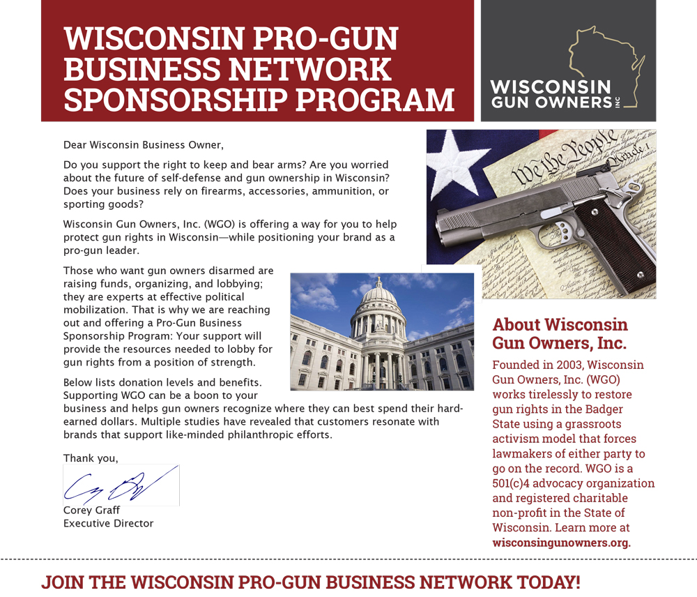 After you have submitted your sponsorship donation, please e-mail a high-res logo image and website link to staff@wisconsingunowners.org.